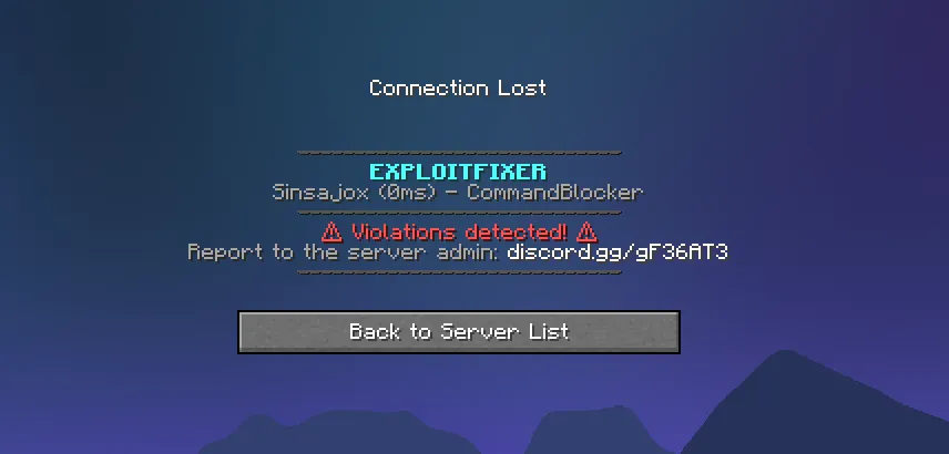ExploitFixer 是专为 Spigot / Paper / Folia Minecraft 服务器打造的最佳反漏洞数据包安全插件。它可拦截 Jessica、Jigsaw、Ayakashi、LiquidBounce、SmogClient、YSK、Meteor 等崩服客户端,以及尚未公开的私有崩服工具。我们时刻做好应对未来新型漏洞和崩服攻击的准备。